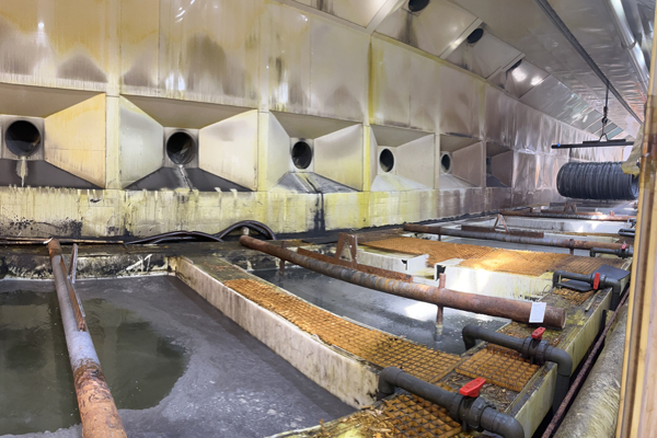 答:酸洗:將整個盤元分別浸入常溫、濃度為20-25%的三個鹽酸槽數分鐘,其目的是除去線材表面的氧化膜。